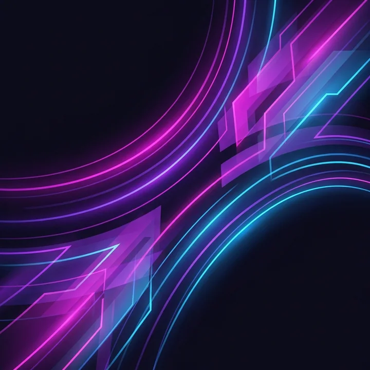 抽象形式排列以暗示运动。曲线方向流动,分层间距,光线渐变引导视线,无实际运动模糊,平衡的动态张力。
