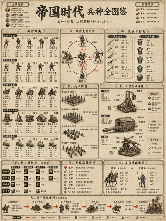 A breathtakingly intricate masterpiece technical infographic of [SUBJECT / 例如: Ancient Chinese Naval Warfare], strictly designed based on the following first-principle visual parameters. [CANVAS & COLOR DICTATORSHIP] BASE CANVAS (L0): Aged military parchment texture, warm #E8DCC4, with subtle weathered stains and historical map fiber textures. SYSTEMIC COLOR (L1, ~60%): Traditional heavy charcoal ink #2B2B2B for structural technical lines, soldier silhouettes, and mechanical joinery. CONTENT TIER COLOR (L2, ~30%): Weathered bronze, dark lacquer red, and iron gray #555555 to distinguish between different units and materials. ACCENT COLOR (L3, ~5-10%): High-visibility Vermillion #E62B1E reserved ONLY for tactical arrows, fire/explosions, and commanding general banners. [SPATIAL GRAVITY & TOPOLOGY] COMPOSITION: [选择一个: 主从卫星布局 / 45度等轴测全景]. Information gravity flows in a logical tactical sequence. BOUNDARIES: Professional editorial layout with clean margins; negative space serves as “tactical breathing room” to separate different combat phases. MODULE TOPOLOGY: [N] distinct information modules depicting different scales (e.g., individual weapon detail vs. macro formation). [DIMENSIONALITY & GRAPHIC PHYSICS] STYLE: Fusion of Traditional Chinese Gongbi (meticulous line-art) and modern military tactical blueprints (like “Osprey Publishing” style). LINE LANGUAGE: 0.8pt sharp technical outlines / 0.3pt faint background grid lines / 2pt bold borders for the main title seal. SURFACE EFFECTS: Realistic material rendering — wood grain on ballistas, metallic sheen on lamellar armor, and subtle ink-wash shading for terrain. [TYPOGRAPHY ECOSYSTEM — ADAPTIVE DENSITY] TYPOGRAPHY DENSITY: Map-dominant (65% visual / 35% text). T1 MACRO HEADER: Massive, ultra-bold Traditional Songti characters for the main title “[主题中文名]”. MUST be strictly pure Chinese Hanzi with an ink-pressed texture. T2 MODULE HEADERS: Kaiti font enclosed in dark rectangular “military rank” badges, labeling different tactical zones. T3 BODY TEXT: Clean, medium-weight Heiti (sans-serif) for weapon specifications and tactical roles. Every character must be razor-sharp. T4 ANNOTATIONS: Micro-text with ultra-crisp technical lines pointing directly to components (e.g., trigger mechanism, fletching, armor joints). [NARRATIVE FLOW] NARRATIVE MODE: [选择一个: 流程顺序型 / 核心辐射型]. VISUAL ENTRY POINT: The most significant tactical unit (e.g., the command chariot or the primary siege engine). PATH MECHANISM: Numerical sequence (1, 2, 3…) or bold cinnabar-red arrows guiding the viewer through the battle logic. [ICONOGRAPHY & METAPHOR] ICON STYLE: Highly detailed historical pictograms for units (infantry, cavalry, archers). CORE METAPHOR: Military order as a precise clockwork mechanism. CONSISTENCY: All symbols must adhere to the [时期/王朝, 如: Tang Dynasty] military aesthetic. [MODULE STRUCTURE — SUGGESTED BLOCKS] [MOD 1: CENTER-PIECE] — The primary [Weapons/Formation] with an exploded-view detail showing internal mechanics. [MOD 2: TACTICAL MAP] — Top-down schematic showing unit movement and line-of-fire. [MOD 3: SOLDIER EQUIPMENT] — Close-up side-by-side comparison of offensive vs. defensive gear. [MOD 4: LOGISTICS/STATISTICS] — Small icon-based charts showing range, weight, or troop density. [FINAL EXECUTION LOCK] Render as a single, ultra-detailed educational plate. All visual systems must be internally consistent with a professional museum archive aesthetic. Every pixel must serve the purpose of clarifying complex military history. Resolution target: Maximum information density, print-ready encyclopedia quality. 主题:中国古代兵器图鉴 3:4 4k文字清晰可读 一幅令人叹为观止的错综复杂的技术信息图杰作,主题为[SUBJECT / 例如: 中国古代海战],严格基于以下第一性原理视觉参数进行设计。 [画布与色彩专制] 基础画布 (L0): 老化军事羊皮纸纹理,温暖的 #E8DCC4,带有微妙的岁月污渍和历史地图纤维纹理。 系统性色彩 (L1, ~60%): 传统的浓重炭墨 #2B2B2B,用于结构技术线条、士兵剪影和机械连接处。 内容层级色彩 (L2, ~30%): 风化青铜色、深漆红色和铁灰色 #555555,用于区分不同兵种和材料。 强调色 (L3, ~5-10%): 高可视度朱红色 #E62B1E,仅保留用于战术箭头、火/爆炸以及主将旗帜。 [空间重力与拓扑学] 构图: [选择一个: 主从卫星布局 / 45度等轴测全景]。信息重力以符合逻辑的战术顺序流动。 边界: 专业的编辑排版布局,带有干净的页边距;负空间作为“战术呼吸空间”以分隔不同的战斗阶段。 模块拓扑: [N] 个不同的信息模块,描绘不同的尺度(例如,单个武器细节与宏观阵型)。 [维度与图形物理学] 风格: 传统中国工笔(精细线稿)与现代军事战术蓝图的融合(类似“Osprey Publishing”风格)。 线条语言: 0.8pt 锐利的技术轮廓线 / 0.3pt 淡雅的背景网格线 / 2pt 粗边框用于主标题印章。 表面效果: 写实材料渲染——弩炮上的木纹、鳞甲上的金属光泽,以及地形的微妙水墨晕染阴影。 [排版生态系统 — 自适应密度] 排版密度: 地图主导(65% 视觉 / 35% 文本)。 T1 宏观标题: 巨大、极粗的传统宋体字符,用于主标题“[主题中文名]”。必须是严格纯中文汉字,带有压墨纹理。 T2 模块标题: 楷体字体,包含在深色矩形的“军衔”徽章中,标记不同的战术区域。 T3 正文文本: 干净、中等粗细的黑体(无衬线体),用于武器规格和战术角色。每个字符必须如刀割般锐利。 T4 注释: 微型文本,带有超清晰的技术线条,直接指向组件(例如,扳机机构、箭羽、盔甲接缝)。 [叙事流] 叙事模式: [选择一个: 流程顺序型 / 核心辐射型]。 视觉入口点: 最重要的战术单位(例如,指挥战车或主攻城器