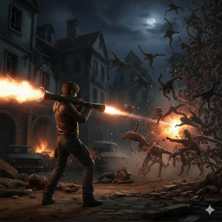 生化危机 拿着火箭筒开火 炸飞大量杂兵! 下一个 更多杂兵 下一个 更多 下一个 更多 结束
