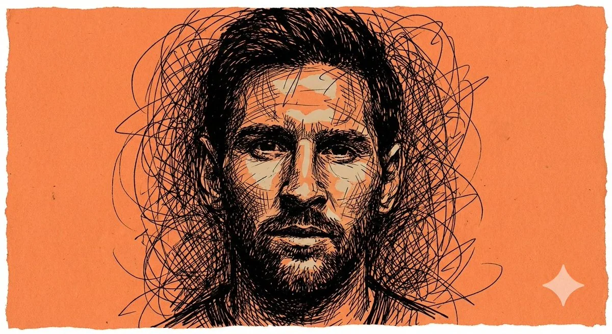 { "style": "affiche chaotique en encre brute", "subject": "visage (utiliser uniquement la référence originale pour les proportions)", "linework": { "primary_method": "longs traits noirs courbes et épais", "structure": "lignes superposées inégales", "shading": "hachures grossières", "symmetry": "légèrement asymétrique" }, "rendering": { "color_tone": "tonalité beige minimale plate", "background": "fond orange plat uniforme", "contrast": "fort contraste", "gradients": false, "realism": false, "3d_effects": false, "polish": "aucun" }, "details": { "hair_and_shadows": "formés par des traits entrelacés et superposés", "aura": "aura irrégulière et entrelacée entourant le visage" } }