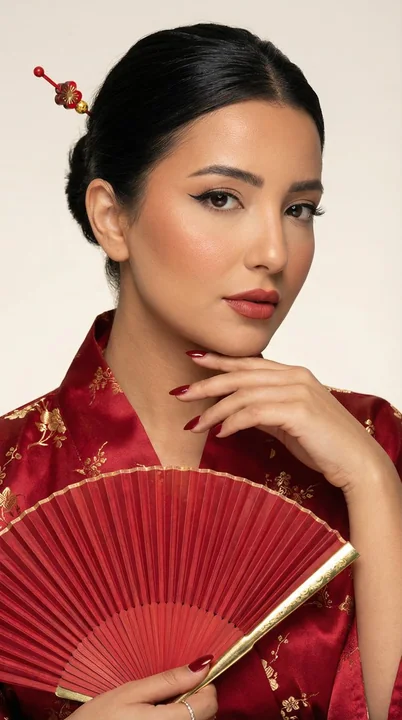 { "generation_request": { "meta_data": { "tool": "NanoBanana Pro", "task_type": "ultra_photoreal_editorial_beauty_transformation", "version": "v1.0_RED_KIMONO_FAN_HAIRPIN_BEAUTY_EN", "priority": "highest", "language": "en" }, "input": { "mode": "image_to_image", "reference_image_usage": "very_high", "preserve_pose": true, "preserve_hand_structure": true, "notes": "Use the uploaded reference image as the composition anchor. Keep the same close-up beauty framing and the hand near the face. Transform wardrobe and styling to a red kimono theme with a matching fan and hair accessory. No text." }, "output_settings": { "aspect_ratio": "4:5", "orientation": "portrait", "resolution_target": "ultra_high_res", "render_style": "luxury_editorial_beauty", "sharpness": "editorial_crisp_with_real_skin", "film_grain": "subtle_or_none", "color_grade": "warm_red_lacquer_tones", "dynamic_range": "natural_not_hdr", "skin_rendering": "real_pores_soft_glow_no_plastic" }, "global_rules": { "camera_language": "85mm beauty lens equivalent, tight close-up framing, shallow depth of field, editorial precision", "lighting_language": "soft diffused beauty key light + gentle specular highlights on skin + controlled shadow shaping", "authenticity_markers": "natural skin texture, visible pores, no AI glow, no HDR, no over-smoothing" }, "creative_prompt": { "scene_summary": "High-end editorial beauty portrait with a Japanese-inspired red kimono styling. A matching folding fan and elegant hairpin accessory. Harmonized makeup and nails.", "environment": { "background": "minimal studio backdrop in warm off-white or very light beige, with a subtle red lacquer ambience clean", "lighting": "soft beauty lighting with a slight warm rim light; balanced highlights, no harsh shine" }, "subject": { "person": "adult woman", "expression": "calm confident editorial gaze", "hair": "sleek dark hair styled neatly with a red-and-gold hairpin (kanzashi-inspired), a few soft face-framing strands", "makeup": { "eyes": "clean winged eyeliner, soft neutral-brown shadow, subtle shimmer on inner corners", "brows": "natural defined brows", "cheeks": "soft warm blush, slightly rosy but refined", "lips": "muted red/rose lacquer lip not overly glossy, lips closed" }, "nails": "short elegant manicure in deep red (wine red) to match the kimono and fan" }, "wardrobe": { "kimono": "red silk kimono with subtle tone-on-tone pattern (floral or geometric), premium fabric folds, elegant collar line, no logos", "details": "optional thin gold accent trim, tasteful and minimal" }, "props": { "fan": "folding hand fan in matching red with gold accents, held near the face/hand area, elegant and harmonious" }, "composition": "tight beauty close-up similar to reference, hand near face visible, jewelry minimal (one statement ring allowed), shallow depth of field, ultra detailed skin and makeup texture" }, "negative_" }