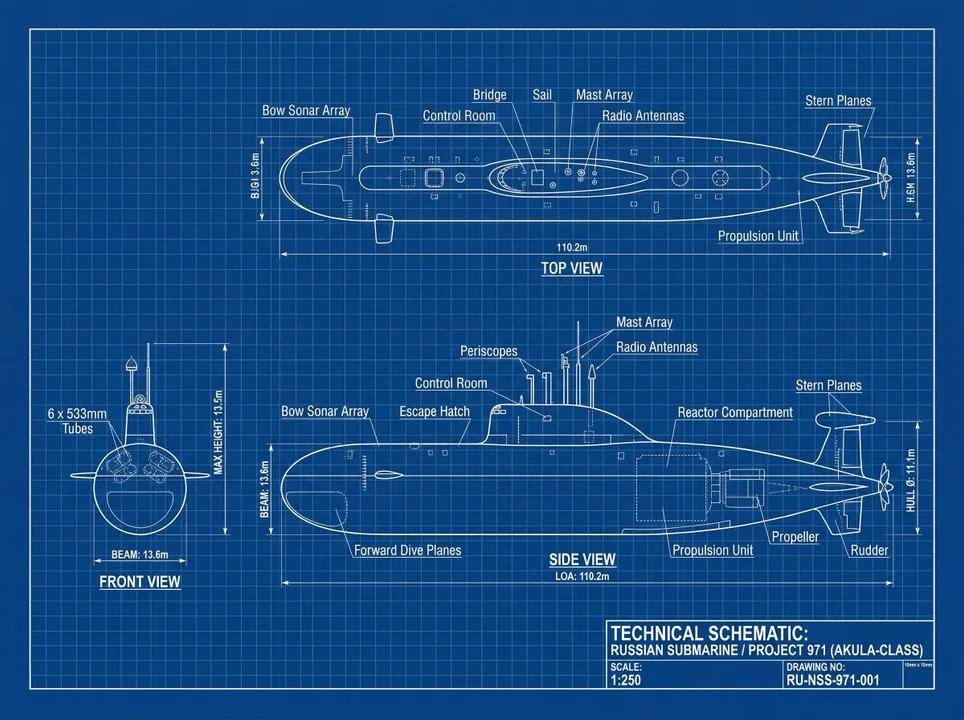 [Iphone],技术蓝图,正交视图,前视图 + 侧视图 + 顶视图,白色矢量线条艺术,细结构线,精确测量,注释标签,尺寸箭头,网格背景,深蓝色背景,极简设计,工程示意图风格,高细节