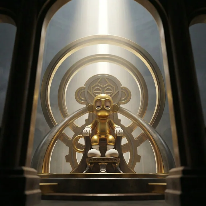 创作一幅上传参考角色坐在神圣宝座上的威严肖像,宝座应感觉像是从角色自身的世界观和设计语言中衍生出来的。 摄像机从部分受阻的视角观察这位统治者,仿佛观者正透过宝座本身的宏伟结构进行窥视。 形象完整性 (最高优先级) 精确保持: • 头身比例 • 眼睛形状、间距、风格化 • 表面材质 • 轮廓和结构设计 请勿人性化。 请勿重新诠释解剖结构。 请勿添加意外的配饰。 透视夸张只能通过摄像机位置实现,而非结构重新设计。 身份始终至上。 宝座适应系统 (通用逻辑) 宝座必须感觉像是角色设计宇宙的结构延伸,并必须充满神圣感。 规则: 从角色中提取设计语言: 主导材质逻辑 几何语言 色彩 世界能量 转化,而非复制。 在轮廓中巧妙呼应形状 反映材质系列,而非精确纹理 使用色调和谐,而非颜色复制 图案可出现在建筑、结构或装饰中,但必须从属于角色的身份。 摄像机与透视 • 摄像机位于宝座平台下方,但横向偏移 • 16–20mm 广角电影镜头 • 宝座结构部分遮挡画面 • 宝座的巨大建筑元素占据画面前景边缘 • 角色透过宝座的结构开口或元素之间可见 • 地平线略微倾斜 5–8 度 • 观者感觉仿佛从权力建筑的背后目睹统治者 前景元素必须感觉巨大且靠近镜头,像一座宏伟的门廊般框住角色。 构图 • 角色居中坐在宝座结构内,但部分被其几何形状框住 • 宝座建筑创造出通向角色的自然视觉通道 • 前景宝座元素略微失焦 • 角色在画面中保持焦点权威 光照 • 一束从宝座上方降下的单一垂直神圣光束 • 体积雾气揭示光线束 • 强烈的轮廓光勾勒出角色轮廓 • 宝座边缘有受控的镜面高光 • 前景宝座元素保持较暗,与被照亮的统治者形成对比 景深与焦点 • 眼睛绝对清晰 • 角色面部和上半身保持锐利 • 前景宝座结构因靠近镜头而略微模糊 • 背景消融于大气层中 图像必须具有层次感: 前景建筑 → 坐着的统治者 → 大气背景。 背景 • 宝座上方广阔的负空间 • 大气张力 • 光束