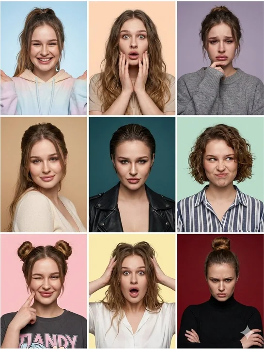 { "image_prompt": { "critical_instruction": "Maintenez la même structure faciale sur tous les panneaux. L'identité doit être incontestable dans chaque prise.", "format": "collage en grille 3x3", "subject": { "face_identity_lock": "identité fixe, caractéristiques faciales cohérentes", "style": "photographie portrait hyper-réaliste, résolution 8k, esthétique photo brute", "skin": "texture de peau naturelle hautement détaillée, pores visibles, teint réaliste", "camera_settings": "pris avec objectif portrait 85mm, mise au point nette sur les yeux, profondeur de champ peu profonde, photographie studio" }, "panels": [ { "position": "top_left", "expression": "joyeux", "pose": "sourire éclatant, mains légèrement levées encadrant le visage", "hairstyle": "queue de cheval haute avec quelques mèches dénouées devant", "outfit": "hoodie tie-dye pastel", "background": "fond studio bleu clair" }, { "position": "top_middle", "expression": "surpris", "pose": "bouche ouverte, mains touchant les joues", "hairstyle": "cheveux longs ondulés et bouclés", "outfit": "tee-shirt beige", "background": "fond studio couleur pêche" }, { "position": "top_right", "expression": "triste", "pose": "regardant légèrement vers le bas, main posée sur la joue", "hairstyle": "chignon désordonné", "outfit": "pull en laine gris", "background": "fond studio lavande apaisant" }, { "position": "middle_left", "expression": "tendre", "pose": "sourire doux, regardant directement la caméra", "hairstyle": "coiffure élégante mi-attachée mi-défaite", "outfit": "chemise à col V crème", "background": "fond studio couleur terre" }, { "position": "center", "expression": "audacieux", "pose": "regard confiant, menton légèrement abaissé", "hairstyle": "cheveux luisants et lissés en arrière", "outfit": "veste en cuir moto noire", "background": "fond studio profondément turquoise" }, { "position": "middle_right", "expression": "amusant", "pose": "nez froncé, sourire coquin", "hairstyle": "coupe courte bouclée bob", "outfit": "chemise à carreaux bleu et blanc", "background": "fond studio vert menthe" }, { "position": "bottom_left", "expression": "charmant", "pose": "clignement d'œil, doigt touchant la joue droite", "hairstyle": "deux couettes espacées", "outfit": "t-shirt graphique gris foncé", "background": "fond studio rose clair" }, { "position": "bottom_middle", "expression": "choqué", "pose": "bouche grande ouverte d'incrédulité, mains agrippant les cheveux", "hairstyle": "cheveux volumineux et désordonnés", "outfit": "chemise blanche à boutons", "background": "fond studio jaune pâle" } ] } }