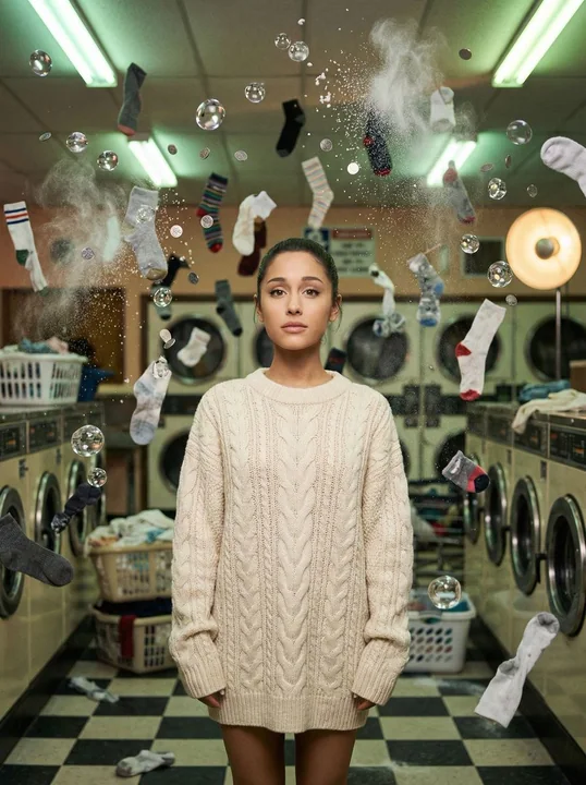 { "vibe_title_en": "Zero-G Laundromat", "master_prompt": "A cinematic, hyper-realistic medium shot of The Protagonist standing calmly in the center of a cramped, overflowing retro laundromat. The scene is an explosion of 'frozen daily life' captured with high-budget practical effects logic. SURREAL ELEMENTS: Time has stopped; hundreds of mismatched socks, swirling soapy water globules that refract light like glass, silver coins, and white detergent powder are suspended in mid-air, floating weightlessly around the subject in a dense, chaotic orbit. The environment is incredibly busy and textured, featuring checkered floor tiles, rows of humming vintage washing machines, and stacks of laundry baskets cluttering the background. Lighting is a mix of dingy overhead fluorescent tubes (green cast) and a warm, soft cinematic key light on the face. Shot on a Hasselblad H6D-100c with an 80mm lens, f/2.8, creating a creamy bokeh that blurs the floating debris in the foreground and background while keeping the subject razor-sharp. The image possesses the organic grain structure of Kodak Portra 800 film, emphasizing skin texture and the tactile reality of the floating objects. No CGI look; purely photographic surrealism.", "meta": { "intent": "Editorial Fashion / Surreal Art", "priorities": "Texture, Density, Surrealism, Lighting quality", "device_profile": "High-End Desktop / Large Format Print" }, "frame": { "aspect": "4:5", "composition": "Central Symmetrical framing with chaotic framing elements", "layout": "Subject centered, surrounded by a dense orbital ring of floating objects", "camera_angle": "Eye-level, straight on", "tilt_roll_degrees": "0 degrees" }, "subject": { "gender": "Female", "identity": "The Protagonist", "demographics": "Universal Template", "face": "Neutral, serene expression, direct eye contact, unbothered by the chaos", "hair": "Pulled back sleekly, similar to reference, emphasizing facial structure", "body": "Relaxed posture, shoulders square to camera", "expression": "Calm, almost hypnotic gaze", "pose": "Standing still, arms relaxed by sides, serving as the anchor in the storm" }, "wardrobe_accessories": { "garments": [ { "item": "Oversized Cable Knit Sweater", "material": "Wool", "color": "{argument name=\"sweater color\" default=\"Cream or Off-White\"}", "fit": "Loose, textured" } ], "accessories": [ { "item": "Small floating earring", "color": "Silver", "material": "Metal", "brand_style": "Minimalist" } ] }, "environment": { "setting": "Cramped 1980s Laundromat", "surfaces": "Linoleum checkered floors, metallic machine drums, soapy water", "depth": "High depth complexity due to floating debris layers", "atmosphere": "Humid, suspended, chaotic yet silent", "lens_interaction": "Water droplets on the lens element, slight halation" } }