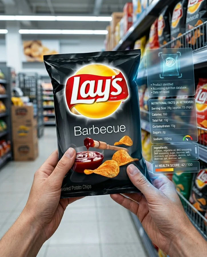 現代スーパーマーケットの[aisle type]通路内での超リアリズム映画撮影レベルの POV シーン。 一人称視点:視聴者は両手で[product description] を握っており、パッケージ正面が鮮明に表示される。栄養成分表示ラベルはフレーム外にある。 製品は画面中央に配置され、シャープな焦点、極めて詳細なテクスチャ(ガラス、プラスチック、金属、段ボールなど)、リアルな反射、自然な材質表現が特徴である。 背景:浅い被写界深度によりソフトにぼやけたスーパーマーケットの棚。自然な商業照明と微細な環境跳ね光。 画面右側には、未来的な半透明ホログラム AI インターフェースを生成する。 この AI インターフェースは表示されているパッケージ本文を読んでいるのではなく、製品認識を実行し、グローバルフードデータベースから該当特定の商業製品の公的標準化栄養データを取得する。 微妙なシステムメッセージを含む: 「製品識別完了」 「栄養データベースへのアクセス中...」 「公式データ取得完了」 HUD は動的に当該特定製品の標準化栄養情報を表示する: • カロリー(1 食分または単位あたり) • 総脂肪 • 飽和脂肪酸(該当する場合) • 炭水化物 • 糖質 • タンパク質(該当する場合) • ナトリウム • 主要な活性成分(該当する場合) • 原材料(該製品の標準配合) • AI ヘルススコア(取得した値に基づいて計算) 表示される値は、当該特定の製品タイプに実在する商業栄養データでありあり、ランダムまたは推計されたものであることのないようにする。 開始時には微細なスキャン認識アニメーションを追加し、その後清潔で構造化されたデータ可視化パネルを表示する。 HUD スタイル:Apple Vision Pro に着想を得た透明ガラス UI、ソフトブルーのグロウ、最小限でモダンなタイポグラフィ、微妙な奥行きとパララックスレイヤー。 ライティング:プレミアム級商業的リアリズム、自然な肌色、製品エッジに微細な輪郭光。 レンズ:35mm リアリスムレンズシミュレーション、f/2.8 浅い被写界深度 カラーグレーディング:清潔感があり、高ダイナミックレンジ、ややクールな商業的トーン 超フォトリアリスティック、8K の詳細 自然な手元、変形なし アスペクト比 4:5