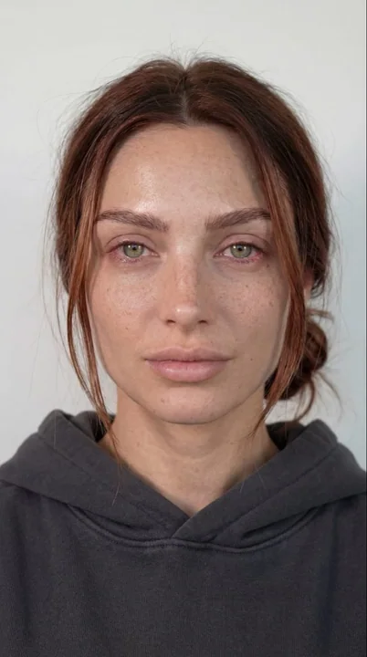 Prompt 1 (Первое изображение – синняя блузка, портрет с бокового угла): Ультрареалистичный крупный портрет красивой женщины с светло-зелеными глазами и мягкими веснушками, рыжевато-каштановые вьющиеся волосы, собранные в небрежный беспорядочный пучок, с естественными прядями, окружающими лицо. Она одета в глубокую синюю блузку с V-образным вырезом. Снято с небольшого бокового угла, голова повернута к камере, уверенная и спокойная мимика. Мягкий естественный свет из окна, создающий нежные тени на одной стороне лица, нейтральный бежевый фон. Минимальный макияж, видна естественная текстура кожи, кинематографическое освещение, небольшая глубина резкости, объектив 85 мм, высокое разрешение, профессиональная модная фотография, резкое фокусирование на глазах, мягкий боке на фоне. ⸻ Prompt 2 (Второе изображение – портрет с прямого угла, худи): Гиперреалистичный прямой портрет женщины со светло-зелеными глазами, тонкие веснушки на щеках и носу, рыжевато-каштановые волосы, разделенные по центру и собранные в низкий небрежный пучок с мягкими прядями, окружающими лицо. Она одета в темно-серое худи. Нейтральное выражение лица, прямой контакт глазами с камерой. Равномерное мягкое освещение студии, минимальные тени, чистый белый фон. Естественная текстура кожи, отсутствие тяжелого макияжа, высокая детализация, объектив 85 мм, небольшая глубина резкости, профессиональная фотография портрета, сверхострый фокус, реалистичные оттенки кожи, разрешение 4K.