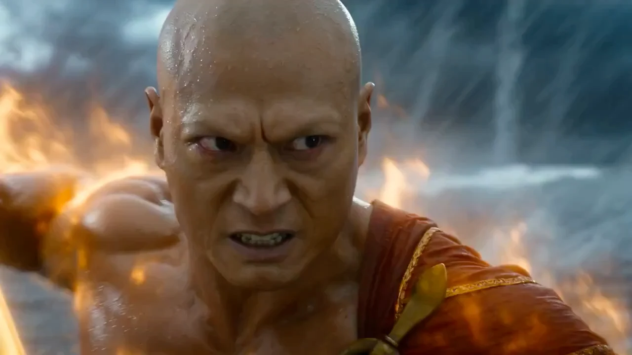 Hollywood-level Oriental fantasy action epic. 8K IMAX movie quality, combination of high-speed photography and slow motion. Emphasizing martial arts and magic duels in human form, and the oppressive sense of massive creatures after transformation. The visual tone is a deathmatch in the torrential rain between the golden unyielding power of Buddhism and the cyan-white soft power of the demon race. Scene The square in front of the main hall of Jinshan Temple, mostly submerged by torrential floods. Torrential rain pouring down, thunder and lightning interweaving, ancient buildings teetering in the wind and rain. Characters 1. Fahai: Expression of a wrathful Vajra, muscles knotted, holding a demon-subduing staff, body burning with materialized golden Buddhist flames. 2. Bai Suzhen (Human form): White clothes soaked by rain, extremely fast movement, wielding two cyan-light swords gathered with water essence. 3. Bai Suzhen (Demon form): An ancient white snake as massive as a mountain, scales hard as jade, emitting cold air. Storyboard Script 00:00-00:05 Shot 1: Close-quarters deathmatch · Martial arts vs. magic duel Camera: Handheld tracking shot combined with fast editing. Action: The two engage in a suffocating close-quarters fast fight in the flood. Fahai's staff swings wide, each strike bringing golden explosive air waves that blast apart the surrounding floodwaters. Bai Suzhen moves like lightning, her twin swords unleashing dense cyan water blades to parry and counterattack. VFX: Golden Buddhist light and cyan demonic energy collide crazily at extremely close range, weapons clashing to burst out dense energy sparks and shockwaves, shattering the surrounding stone railings. 00:05-00:09 Shot 2: Setback and transformation · Giant beast descends Camera: Rapid pull-back followed by a low-angle push-in. Action: Fahai strikes Bai Suzhen back hundreds of meters with a heavy staff blow. Bai Suzhen stabilizes her figure in the air and lets out a shrill long roar towards the sky. VFX: A blinding white light reaching the sky erupts. Inside the light, her figure rapidly expands, instantly transforming into a sky-blocking giant white snake coiling above Jinshan Temple. The huge snake head looks down at the tiny Fahai, maximizing the sense of oppression. 00:09-00:12 Shot 3: Indestructible Vajra · Unleashing the Golden Bell Shield Camera: Medium shot impact lens. Action: Facing the giant beast, Fahai plunges his staff into the ground, forms hand seals rapidly with both hands, and roars angrily. VFX: An incredibly huge, semi-transparent solid golden bell shield appears out of thin air, completely covering his whole body. The surface of the golden bell flows with countless glowing Sanskrit scriptures, emitting an indestructible aura. 00:12-00:15 Shot 4: Brute force breaking defense · Ultimate shattering Camera: Highly tense slow-motion close-up explosion shot. Action: The thick tail of the giant white snake carries immense force, sweeping horizontally against the golden bell shield like a battering ram. VFX: At the moment of contact, energy compression creates blinding light spots. Immediately afterwards, accompanied by a world-shattering bang, the seemingly invincible golden bell shield is covered in cracks, finally exploding completely into billions of golden energy fragments and light dust splashing in the torrential rain. Fahai is sent flying, vomiting blood. 好莱坞级东方魔幻动作史诗。8K IMAX电影画质,高速摄影与慢镜头结合。强调人形态下的武术与法术对轰,以及变身后的巨物压迫感。视觉基调是金色的佛门至刚之力与青白色的妖族柔劲在暴雨中的死斗。 场景 被滔天洪水淹没大半的金山寺主殿前广场。暴雨如注,雷电交加,古建筑在风雨中摇摇欲坠。 角色 1. 法海:表情怒目金刚,肌肉虬结,手持降妖禅杖,周身燃烧着实质化的金色佛光烈焰。 2. 白素贞(人形态):白衣被雨水打湿,身法极快,双手挥舞两把汇聚水流精气的青光宝剑。 3. 白素贞(妖形态):体型如山岳般庞大的上古白蛇,鳞片坚硬如玉,散发寒气。 分镜脚本 00:00-00:05 镜头1:近身死斗·武术与法术对轰 机位:手持跟随摄影配合快速剪辑。 动作:两人在洪水中展开令人窒息的近身快打。法海的禅杖大开大合,每一击都带起金色的爆炸气浪,将周围的洪水炸开。白素贞身形如电,双剑挥出密集的青色水刃格挡反击。 特效:金色的佛光与青色的妖气在极近距离内疯狂对撞,兵器相交爆发出密集的能量火花和冲击波,震碎了周围的石栏杆。 00:05-00:09 镜头2:受挫变身·巨兽降临 机位:极速拉远接仰拍推镜。 动作:法海一记重杖将白素贞击退数百米。白素贞在空中稳住身形,仰天凄厉长啸。 特效:一道刺眼的通天白光爆发。她在光芒中身形极速膨胀,瞬间化作一头遮天蔽日的白色巨蛇盘踞在金山寺上空。巨大的蛇头俯瞰着渺小的法海,压迫感拉满。 00:09-00:12 镜头3:金刚不坏·祭出金钟罩 机位:中景冲击镜头。 动作:面对巨兽,法海将禅杖插入地面,双手飞速结印,怒吼一声。 特效:一座巨大无比、半透明的实体金色金钟罩凭空显现,将他整个人完全笼罩。金钟表面流转着无数发光的梵文经文,散发着坚不可摧的气息。 00:12-00:15 镜头4:蛮力破防·终极破碎 机位:极具张力的慢动作特写爆破镜头。 动作:白色巨蛇粗壮的尾部携带着万钧之力,如同攻城锤一般狠狠横扫在金色的金钟罩上。 特效:接触瞬间,能量挤压产生刺眼的光斑。紧接着,伴随一声惊天动地的巨响,看似无敌的金钟罩表面布满裂痕,最终彻底炸裂成亿万片金色的能量碎片和光尘在暴雨中飞溅。法海口吐鲜血被震飞。