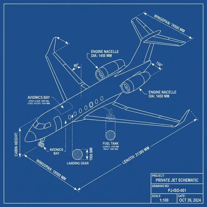 Blueprint style technical drawing of [OBJECT], detailed white line art on a solid blue background, isometric view, with technical annotations and measurements, high precision, clean architecture drafting style, minimal shading, CAD-like render, professional engineering schematic. 蓝图风格技术图纸[OBJECT],纯蓝色背景上的详细白色线条画,等轴测视图,含技术标注与尺寸,高精度,干净建筑制图风格,极少阴影,类似CAD渲染,专业工程示意图
