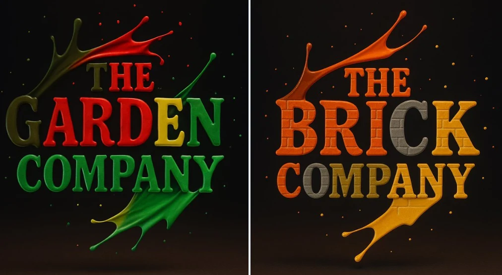 Create a photograph of a [BRAND] logo formed from four vibrant paint splashes: red, blue, green, and yellow, captured mid-motion. Each color flows dynamically across different parts of the logo, as if sculpted from liquid paint. Droplets are suspended in the air around it, enhancing the illusion of movement. Set against a dark background with soft, vivid lighting that accentuates the glossy texture and fluid motion. Use appropriate colors for the logos.