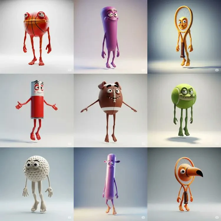 Chibi-style 3D vinyl toy of [subject], rendered in [color1] and [color2] tones, front-facing on a white background. Minimalist composition with soft shadows, oversized head and tiny body proportions, clean OC renderer output in Cinema 4D. Toy-like shine and playful charm.