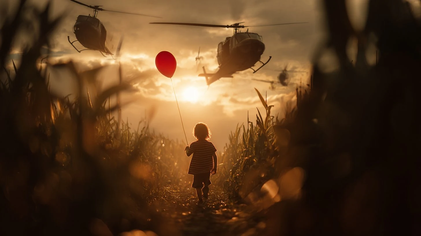 Cinematic still, A [ description of the character or action scene], with a [ background/environment], a dynamic angle, a [light effect or lighting condition], motion blur, high-resolution photography, a cinematic scene, cinematic lighting, and high contrast.