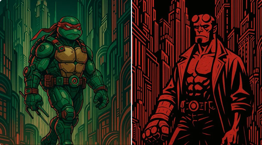 [SUBJECT] set within an Art Deco Metropolis, showcasing the grandeur and geometric elegance of 1920s architecture. Use streamlined forms and ornamental details, highlighting a sophisticated color palette of [COLOR1] and [COLOR2] to reflect the prosperity of the era.