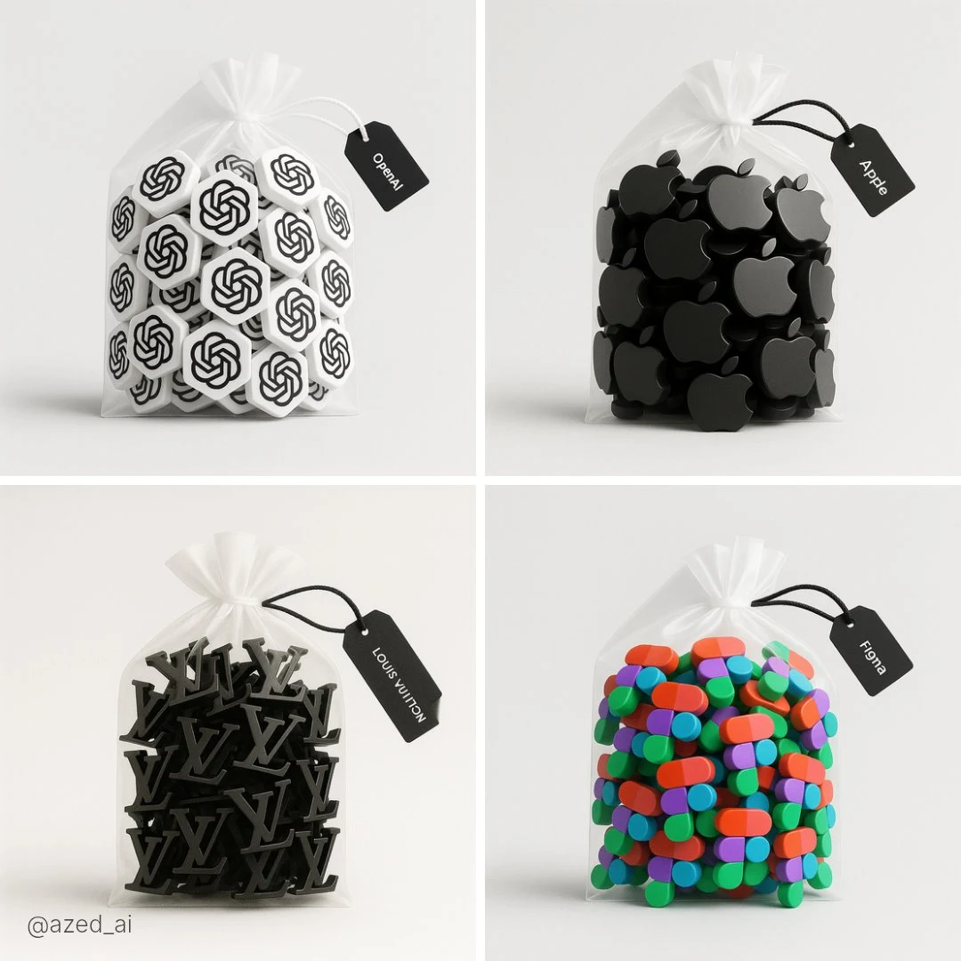 A high-resolution photograph of a clear plastic drawstring bag placed on a light gray background. Inside the bag are multiple tiny 3D [subject] figures arranged neatly. The bag is tied with a soft white ribbon and has a black label tag that reads ‘[LABEL TEXT]’. Soft lighting and clean shadows emphasize the realistic textures and details