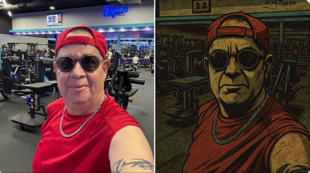 Restyle this image into a gritty Gorillaz-style illustration, bold thick black outlines, sharp angular edges, flat expressive lighting, stylized high-contrast shadows, dirty distressed surface textures, muted color palette: washed-out teals, olive greens, rusty reds, mustard yellows, dusty browns, raw grungy urban atmosphere, comic book flatness mixed with painterly grit, hand-drawn finish with faded gradients, graphic novel aesthetic, with a rebellious, animated tone, dark stylish tone, full of attitude.