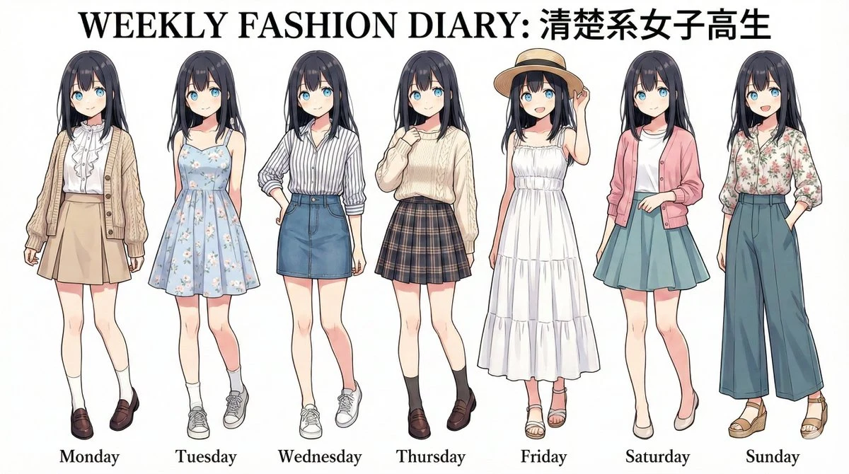 - Only wearing seven different sets of casual outfits based on the [Fashion Theme].