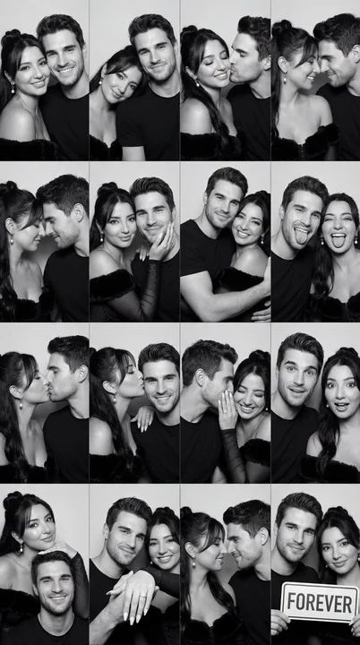 { "generation_request": { "meta_data": { "task_type": "black_and_white_photobooth_couple_romantic_grid_4x4", "language": "en", "priority": "highest", "version": "v1.2_BW_PHOTOBOOTH_COUPLE_ROMANTIC_4X4" }, "input": { "mode": "image_to_image", "reference_image_usage": "very_high", "preserve_identity": true, "preserve_facial_features": true, "preserve_hairstyle": true, "notes": "Use the uploaded reference as strict identity anchor for BOTH the adult man and adult woman. Preserve exact facial structure, bone proportions, and hairstyle in all 16 panels. Keep mood romantic, warm, intimate, soft — no sadness, no exaggerated comedy." }, "output": { "aspect_ratio": "1:1", "resolution": "ultra_high", "num_images": 1, "layout": { "type": "grid", "rows": 4, "cols": 4, "gutter": "thin", "panel_consistency": "very_high" }, "sharpness": "crisp_photobooth", "grain": "subtle_analog_bw" }, "scene": { "concept": "romantic black and white photobooth contact sheet of a couple", "environment": "flat neutral gray backdrop", "lighting": { "style": "direct photobooth flash", "key_light": "front flash slightly soft but defined", "shadows": "minimal soft shadow behind subjects", "avoid": "cinematic side lighting, dramatic contrast" } }, "camera": { "lens": "50mm", "framing": "tight head and shoulders", "focus": "eyes perfectly sharp in every panel" }, "subject": { "type": "adult couple", "composition": "very close proximity in each frame", "wardrobe": "simple neutral tops, no logos", "makeup": "natural skin texture", "anatomy_rules": "accurate facial proportions, correct hands" }, "expression_set": { "panel_01": "cheek to cheek soft smile", "panel_02": "forehead touch, eyes closed gentle smile", "panel_03": "man kissing woman's cheek softly (PG-13)", "panel_04": "woman kissing man's cheek softly", "panel_05": "noses touching, subtle smile", "panel_06": "eye contact, intimate calm gaze", "panel_07": "woman resting head on his shoulder", "panel_08": "man wrapping arm gently around her", "panel_09": "both smiling with foreheads almost touching", "panel_10": "soft laugh together, eyes crinkled naturally", "panel_11": "woman holding his face gently", "panel_12": "man brushing hair behind her ear", "panel_13": "close embrace, side profile intimacy", "panel_14": "subtle kiss near temple", "panel_15": "whisper moment near ear, soft smile", "panel_16": "both looking at camera, warm confident couple energy" }, "style": { "color": "pure black and white", "contrast": "medium_high", "skin_texture": "natural pores visi
