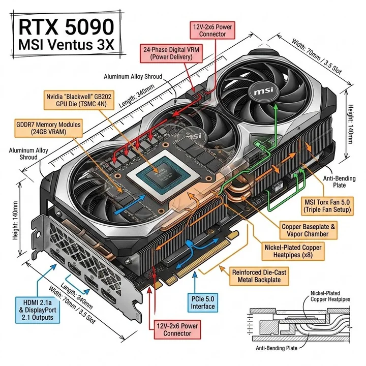 Infographic-style images that take it to another level, in this case an Nvidia RTX 5090, just replace OBJECT with what you want to infographic, the prompt is in the following post.