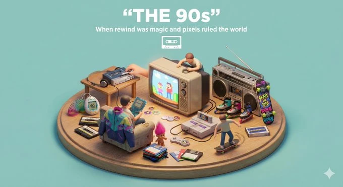 Create a clear, 45° top-down isometric miniature 3D diorama representing the era [YEAR / DECADE] as a time capsule. Use soft refined textures, realistic PBR materials, and gentle nostalgic lighting. Design a raised base filled with iconic objects, fashion, technology, and cultural symbols from this era. Include tiny stylized people interacting with the environment (no facial details). Use a clean solid [BACKGROUND COLOR] background. At the top-center, display [ERA NAME] in large bold text, beneath it show a short nostalgic subtitle, and place a minimal retro-style icon below. All text must automatically match the background contrast (white or black). 创建一个清晰、45°俯视等距的迷你3D立体透视模型,作为代表时代[YEAR / DECADE]的时间胶囊。使用柔和精致的纹理、逼真的PBR材质和温柔怀旧的灯光。设计一个凸起的底座,填满该时代标志性的物品、时尚、科技和文化符号。包括与环境互动的小巧风格化人物(无面部细节)。使用纯色[BACKGROUND COLOR]背景。在顶部中央,以大号粗体显示[ERA NAME],下方显示一句简短的怀旧副标题,再下方放置一个极简复古风格图标。所有文字必须自动匹配背景对比度(白色或黑色)。