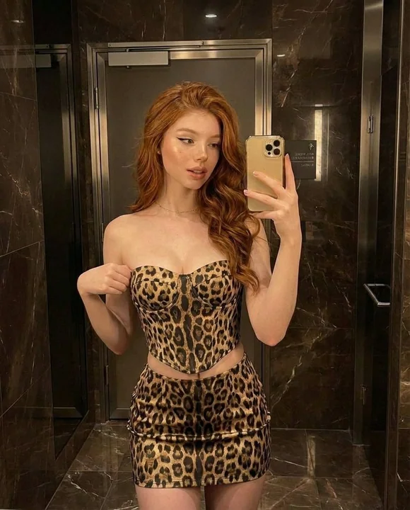 { "prompt": "A mirror selfie of a confident woman with long wavy red hair wearing a strapless leopard print corset top and matching mini skirt. She is standing in a luxurious marble bathroom with dark brown walls and warm lighting. She is holding a gold smartphone in front of a mirror. Glam makeup with highlighted cheeks, soft eyeliner, and natural lips. Fashion-forward, stylish, high detail, realistic lighting, sharp focus, 4k.", "negative_prompt": "blurry, low resolution, distorted body, bad anatomy, extra fingers, overexposed lighting, messy background", "style": "photorealistic, fashion photography, luxury aesthetic", "camera": "mirror selfie, eye-level angle, shallow depth of field", "lighting": "warm indoor lighting, soft glow, reflective marble surfaces", "quality": "high detail, 4k, sharp focus" }