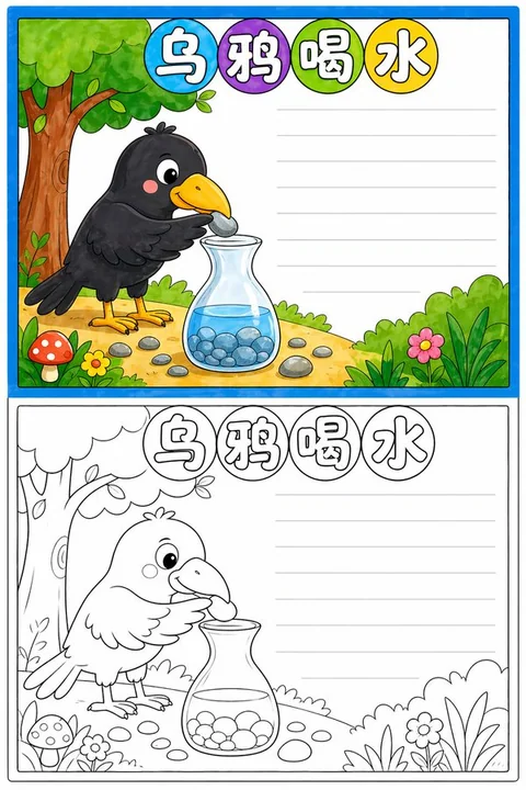 style: 儿童绘本风 + 手抄报模板 + 可涂色线稿