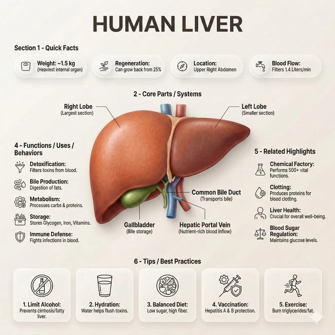 * "Weight: ~1.5 kg (Heaviest internal organ)"